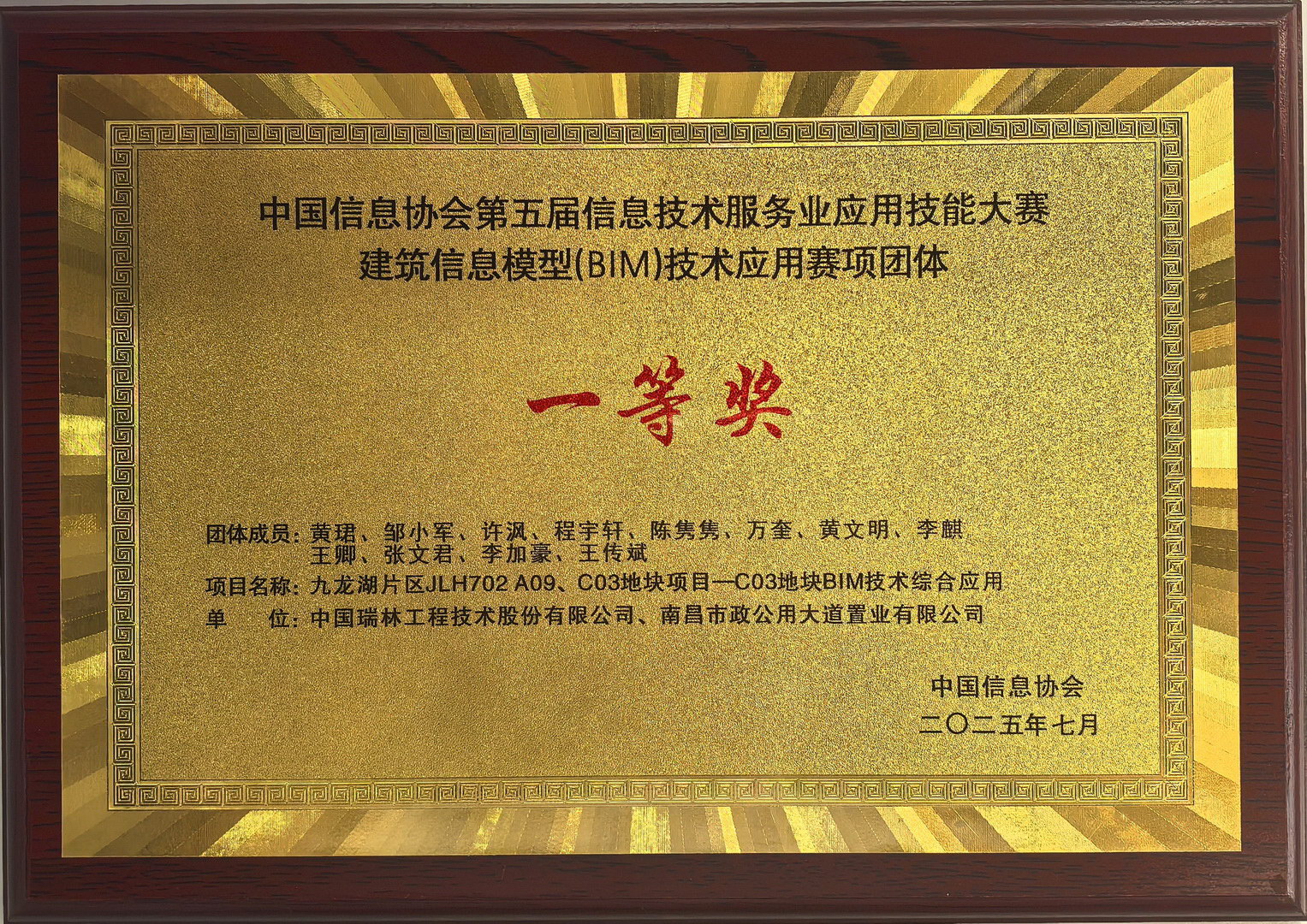 近日,在第三屆信息技術服務產業發展論壇暨中國信息協會第五屆信息技術服務業應用技能大賽頒獎典禮上,由中國瑞林建筑設計研究院牽頭,聯合南昌市政公用大道置業有限公司共同申報的“九龍湖片區JLH702A09、C03地塊項目-C03地塊BIM技術綜合應用”成果,從全國5000余項入圍成果中脫穎而出,最終斬獲建筑信息模型(BIM)技術應用賽項團體一等獎的佳績。